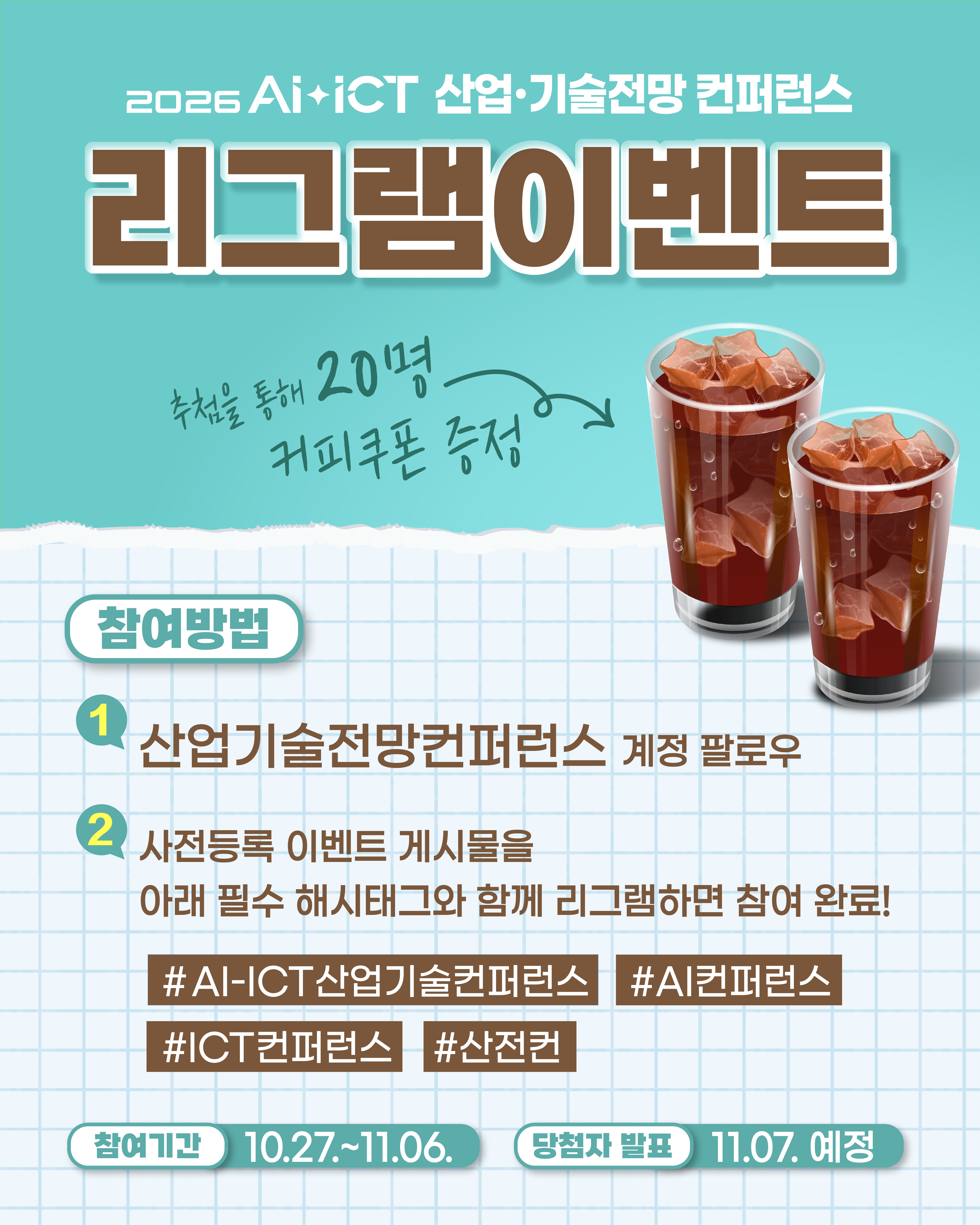 | 2026 AI-ICT »ê¾÷±â¼úÀü¸Á ÄÁÆÛ·±½º¿Í ÇÔ²²ÇÏ´Â ¸®±×·¥ À̺¥Æ® | 2025-10-28 |